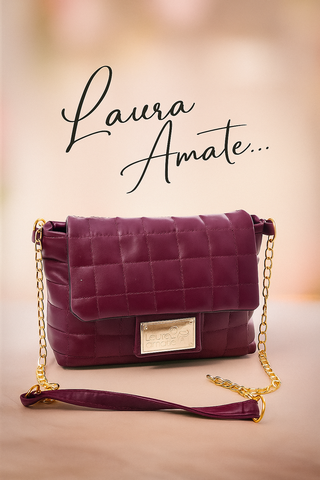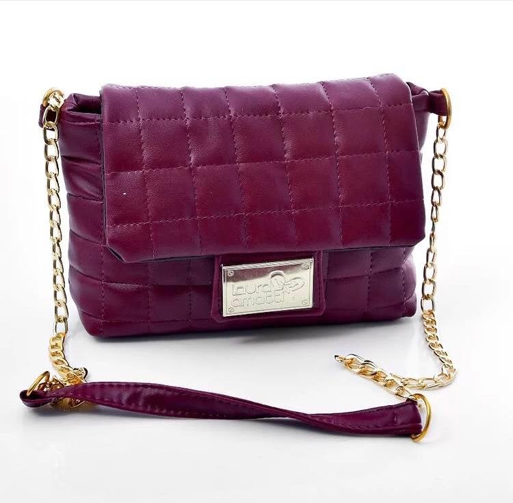 Be the first to review “Plum Quilted Crossbody Bag with Gold Chain”